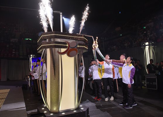Mainland olympic gold medallists Wei Qiuyue (women's volleyball) and Wang Zhen (men's race walking), Hong Kong elite athletes Sarah Lee and Au Chun-ming lit the cauldron of the games.